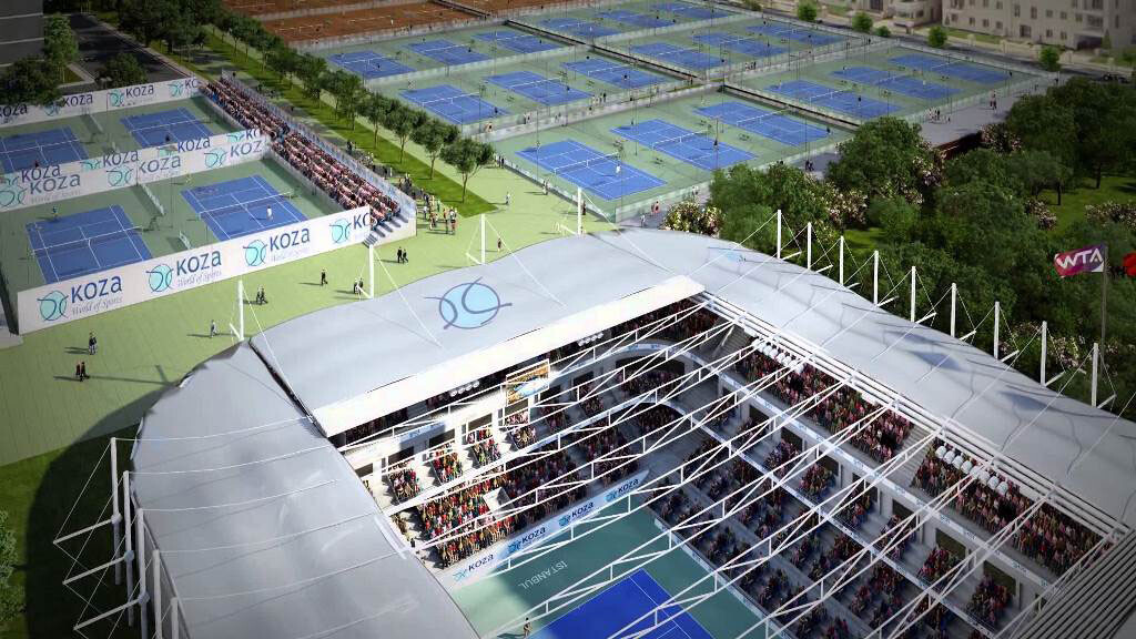 8.000 kişilik üstü açılır/kapanır stand, 3.000 kişi kapasiteli tenis akademisi,